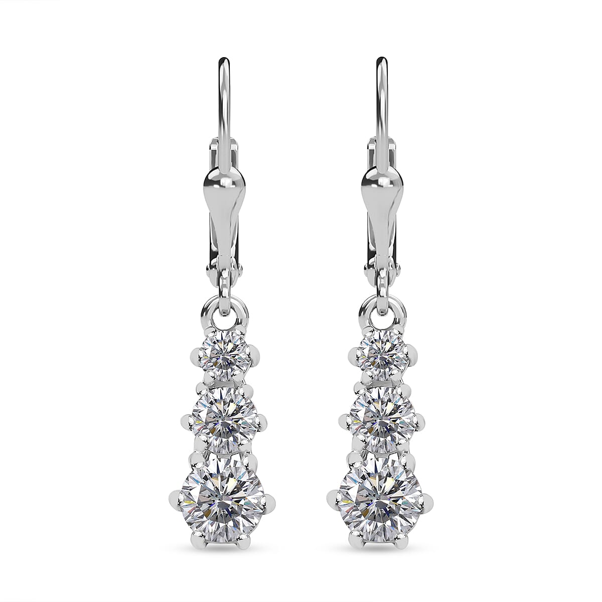 Moissanite 1.60 ctw Solitaire Lever Back Earrings in Rhodium Over Sterling Silver