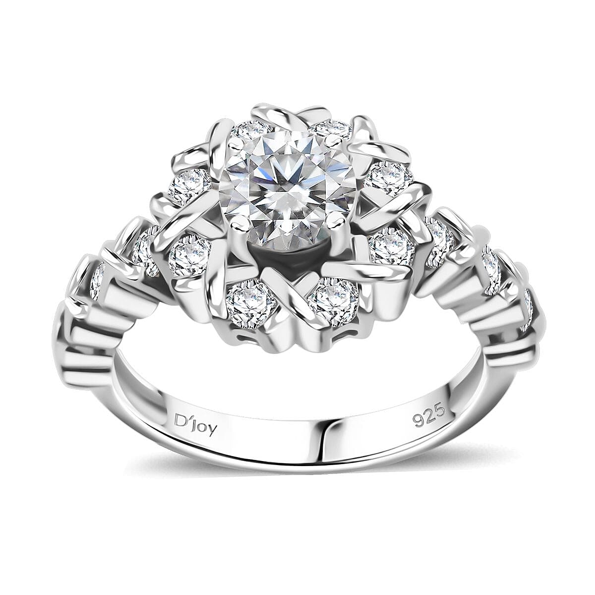 This moissanite ring is inspired by the XOXO design. This silver ring features a metal "X" "and gemstone "O" symbolizing love and affection. The moissanite, coveted for its shine and durability, is securely set in the design.