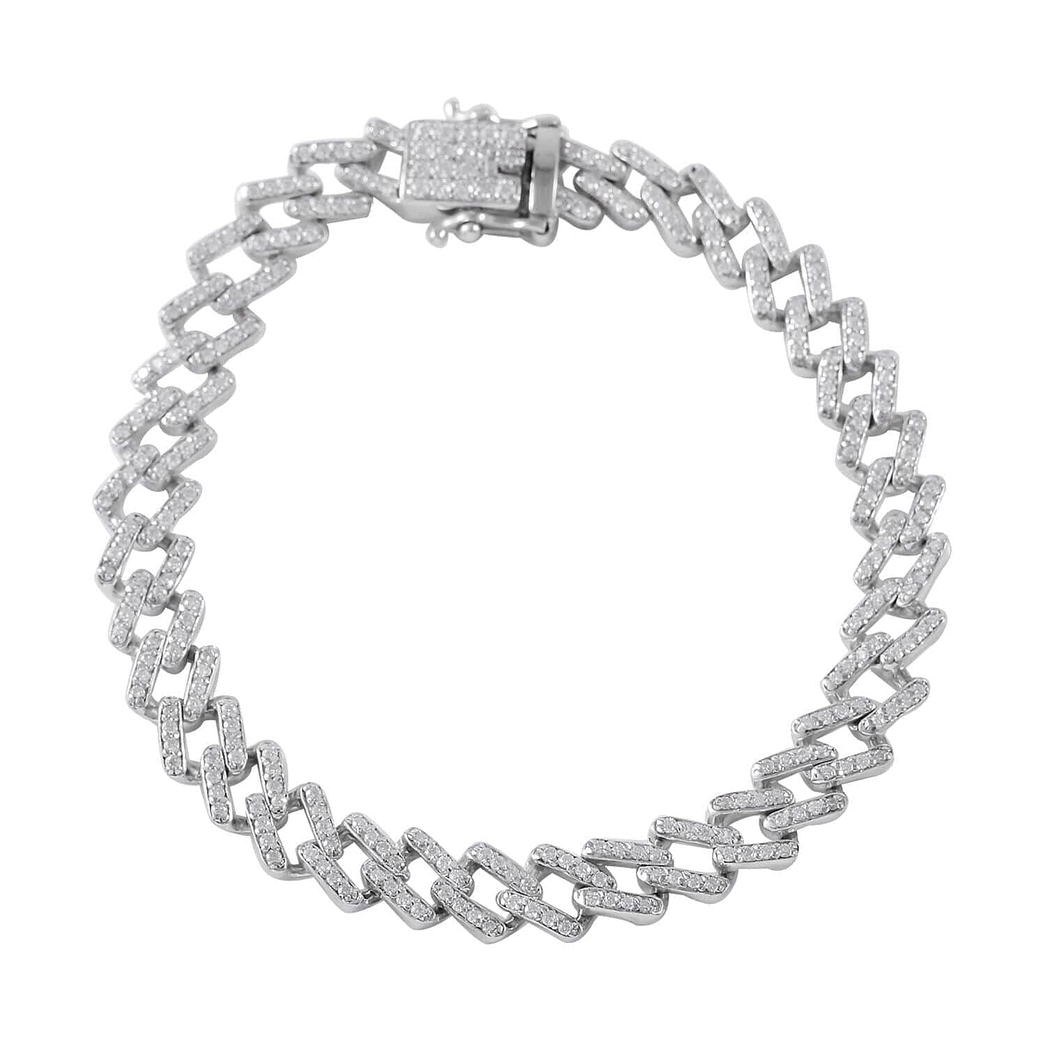 Elevate every gesture with the unmatched allure of this moissanite curb bracelet. Each exquisitely crafted link, blanketed in platinum over sterling silver, hosts a gleaming moissanite stone, creating a cascade of luminance around your wrist. This silver bracelet isn't just an accessory; it's a statement, promising unparalleled elegance and shimmer with every move.