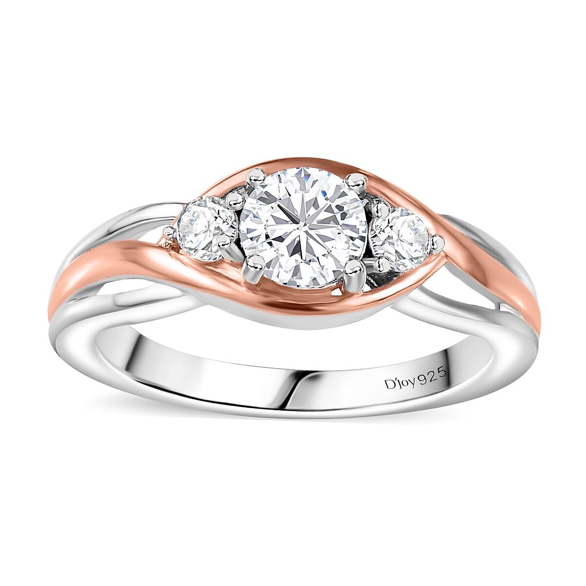 Moissanite 3 Stone Ring in 18K Vermeil RG and Rhodium Over Sterling Silver (Size 5.0) 0.55 ctw