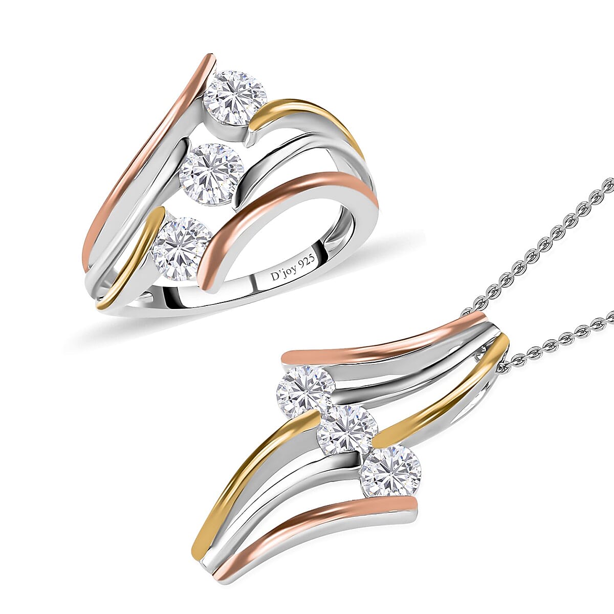 • COMPLETE SET: This women’s jewelry set in silver includes both a three stone moissanite ring and bypass pendant necklace, offering versatile elegance for various occasions