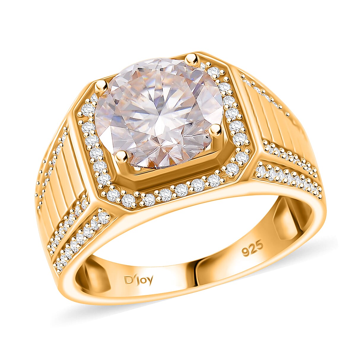 Moissanite 5.15 ctw Men's Ring in 18K Vermeil Yellow Gold Over Sterling Silver (Size 9.0)