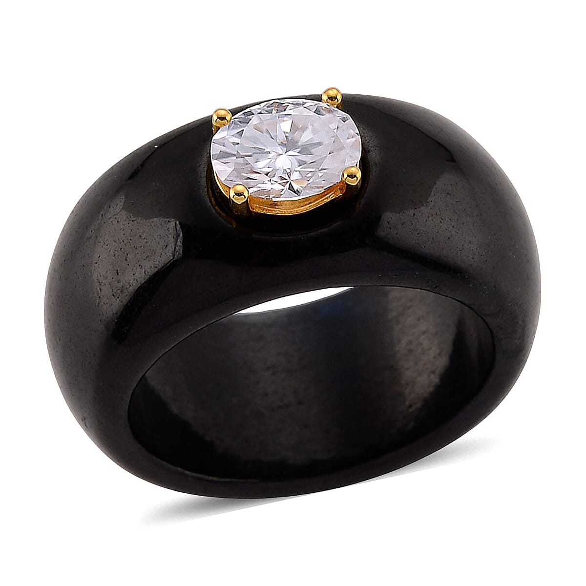 Moissanite and Black Jade 39.65 ctw Band Ring in 18K Vermeil Yellow Gold Over Sterling Silver (Size 8.0)