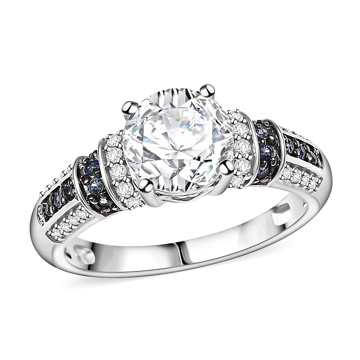 Moissanite and Blue Sapphire 2.00 ctw Ring in Rhodium Over Sterling Silver (Size 5.0)