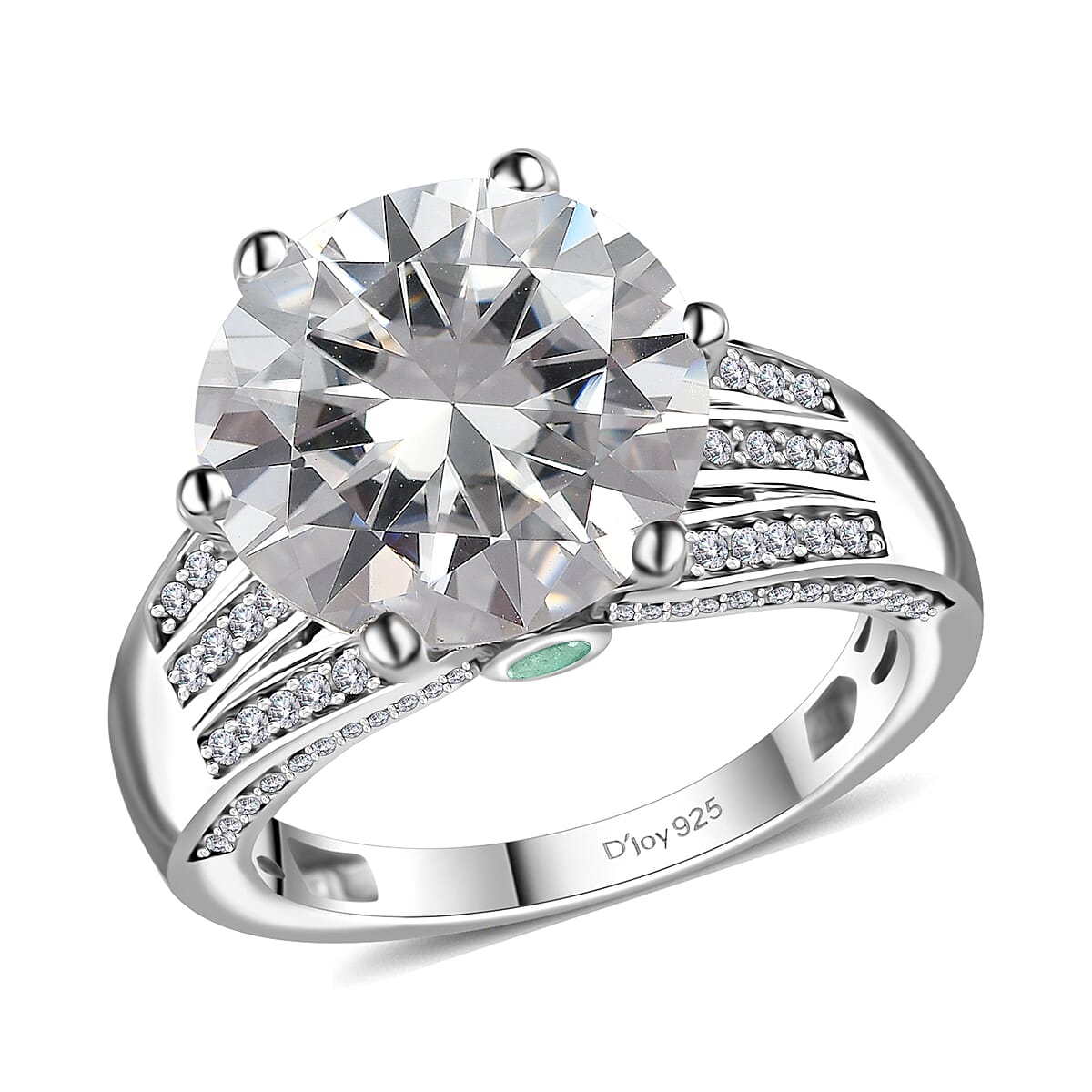 Moissanite and Kagem Zambian Emerald Ring in Platinum Over Sterling Silver (Size 6.0) 6.40 ctw