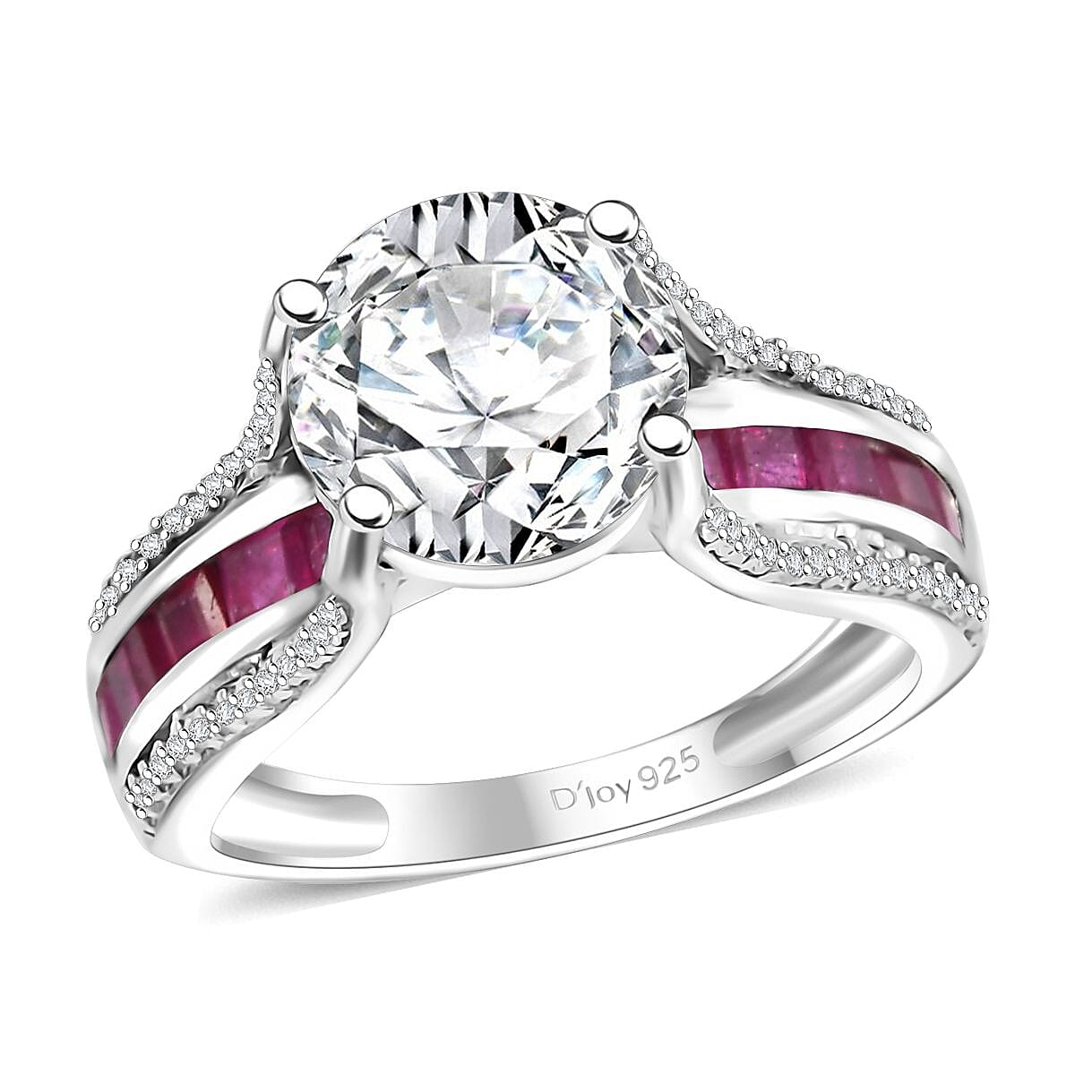 Moissanite and Niassa Ruby (FF) 3.80 ctw Bridge Ring in Platinum Over Sterling Silver (Size 11.0)