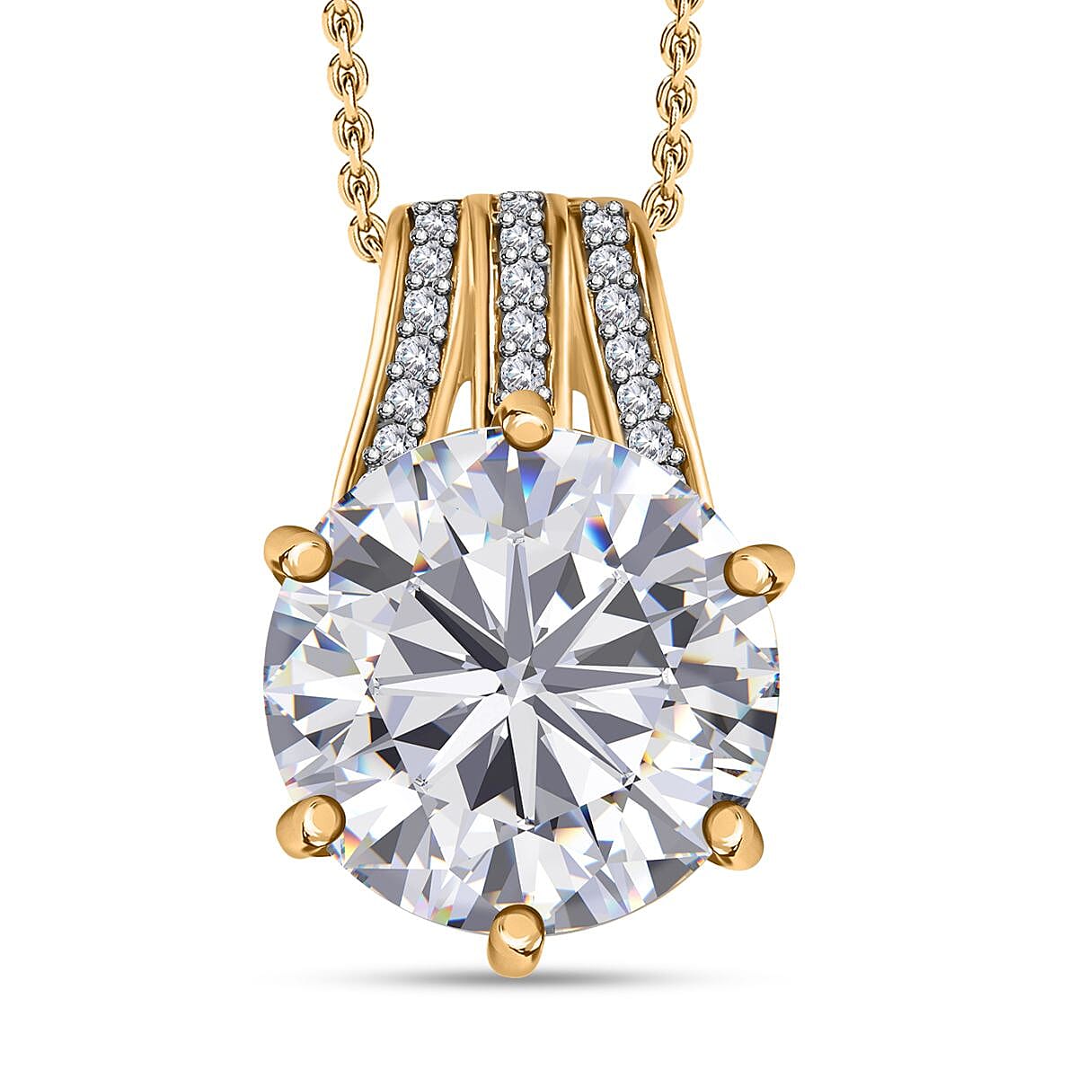 Moissanite and Ouro Fino Rubellite Princess Crown Pendant Necklace 20 Inches in Vermeil Yellow Gold Over Sterling Silver 6.10 ctw