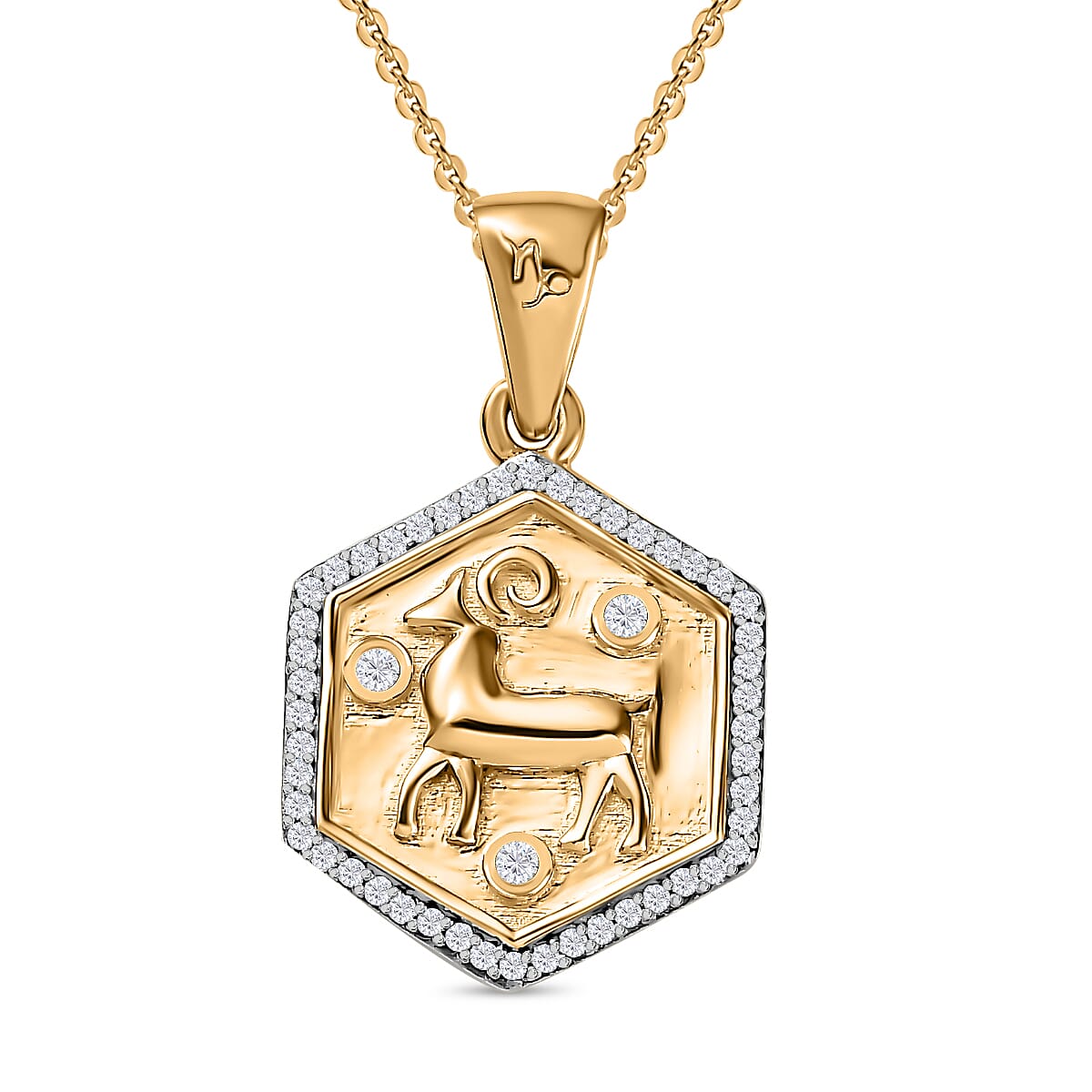Moissanite Aries Zodiac Medallion Pendant Necklace 20 Inches in Vermeil Yellow Gold Over Sterling Silver 0.50 ctw