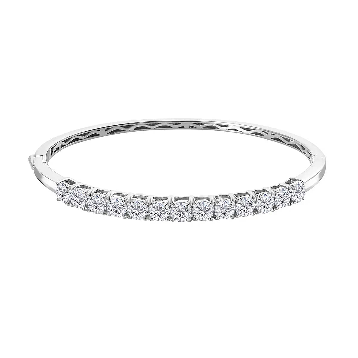 Moissanite Bangle Bracelet in Platinum Over Sterling Silver (7.25 In) 5.60 ctw