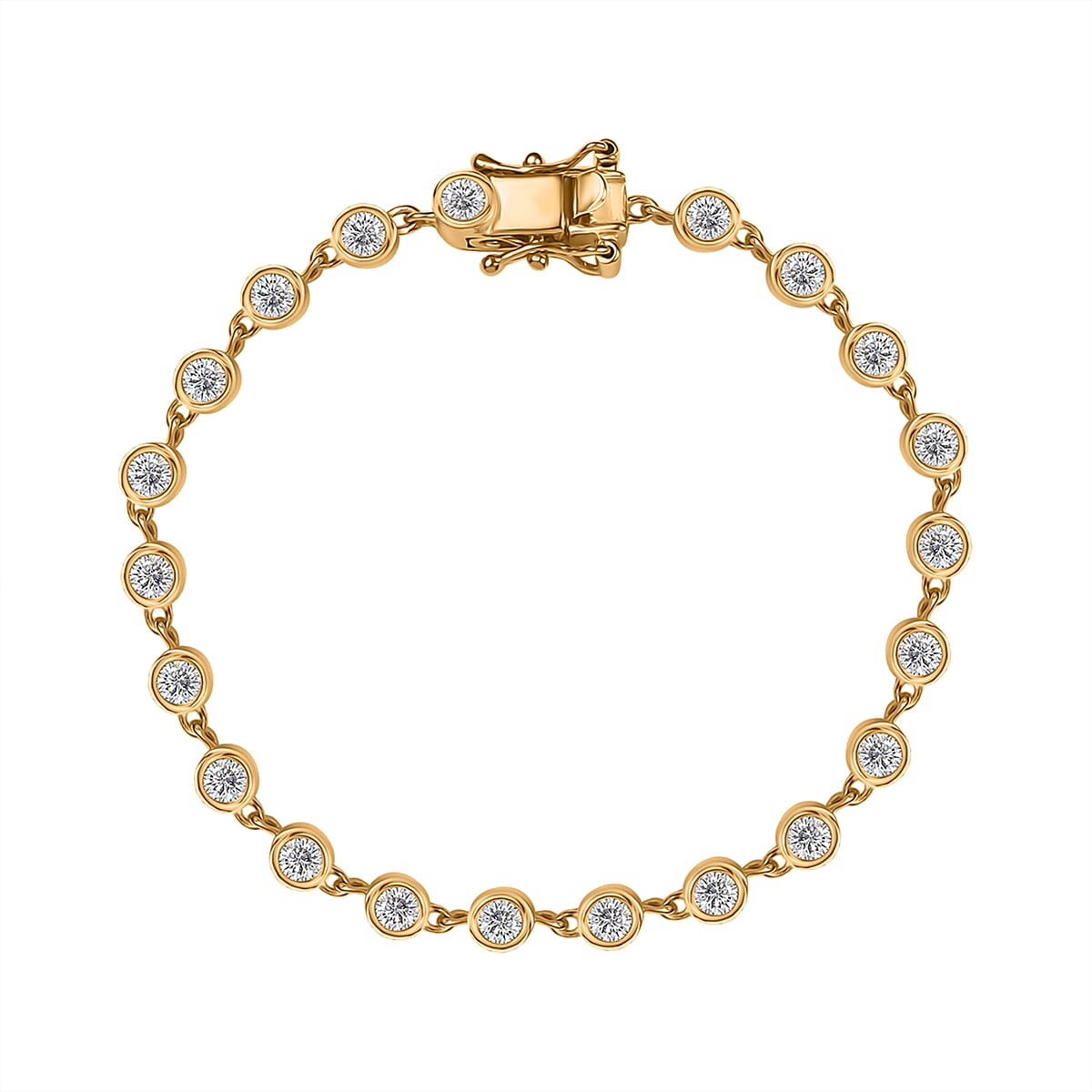 This sterling silver moissanite bracelet is a sophisticated piece designed for women. It showcases a series of brilliantly round-cut moissanite gems. Known for their durability and lustrous appeal, these gems are set securely in bezel settings, ensuring both style and longevity.