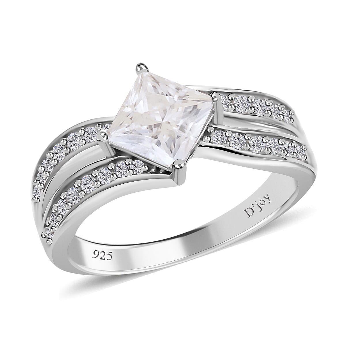 Moissanite Bypass Band Ring in Rhodium Over Sterling Silver (Size 6.0) 1.65 ctw