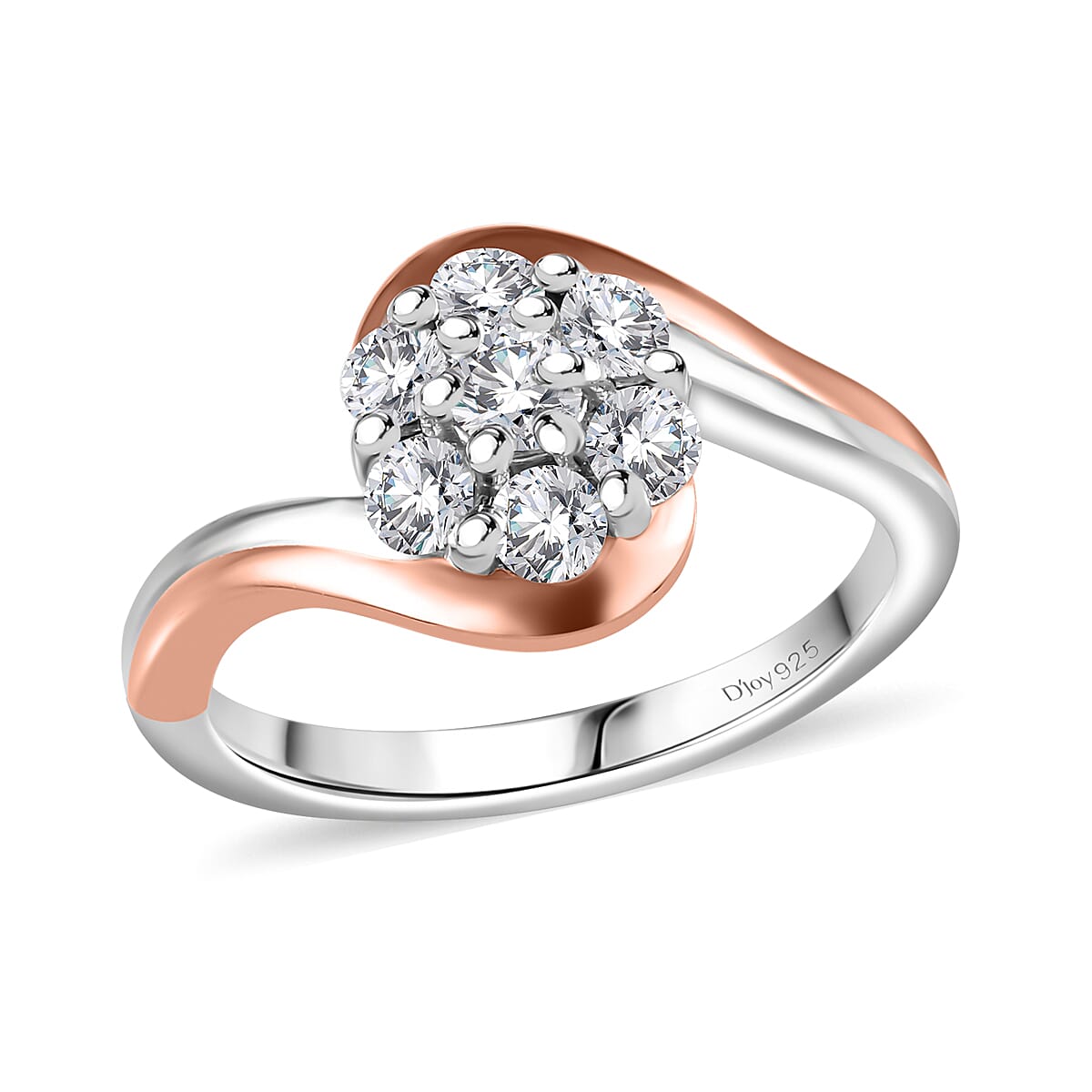 Moissanite Bypass Floral Ring in 18K Vermeil RG and Rhodium Over Sterling Silver (Size 8.0) 0.50 ctw