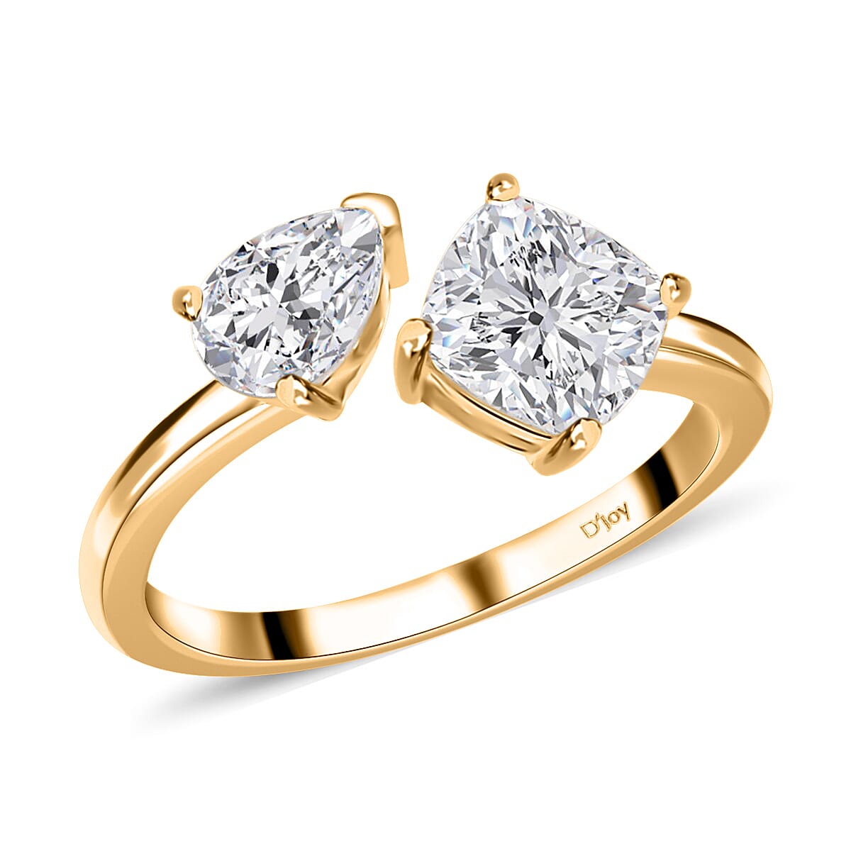 Moissanite Bypass Ring in Vermeil Yellow Gold Over Sterling Silver, Open Band Ring, Moissanite Ring, Two Stone Ring 2.35 ctw (Size 10)