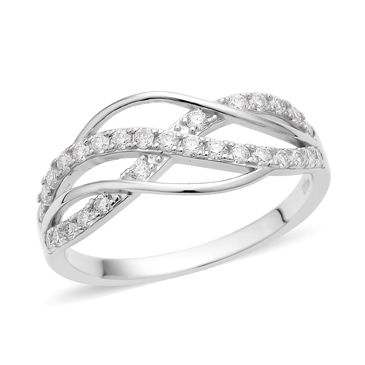 Moissanite Crossover Ring in Sterling Silver (Size 5.0) 0.40 ctw