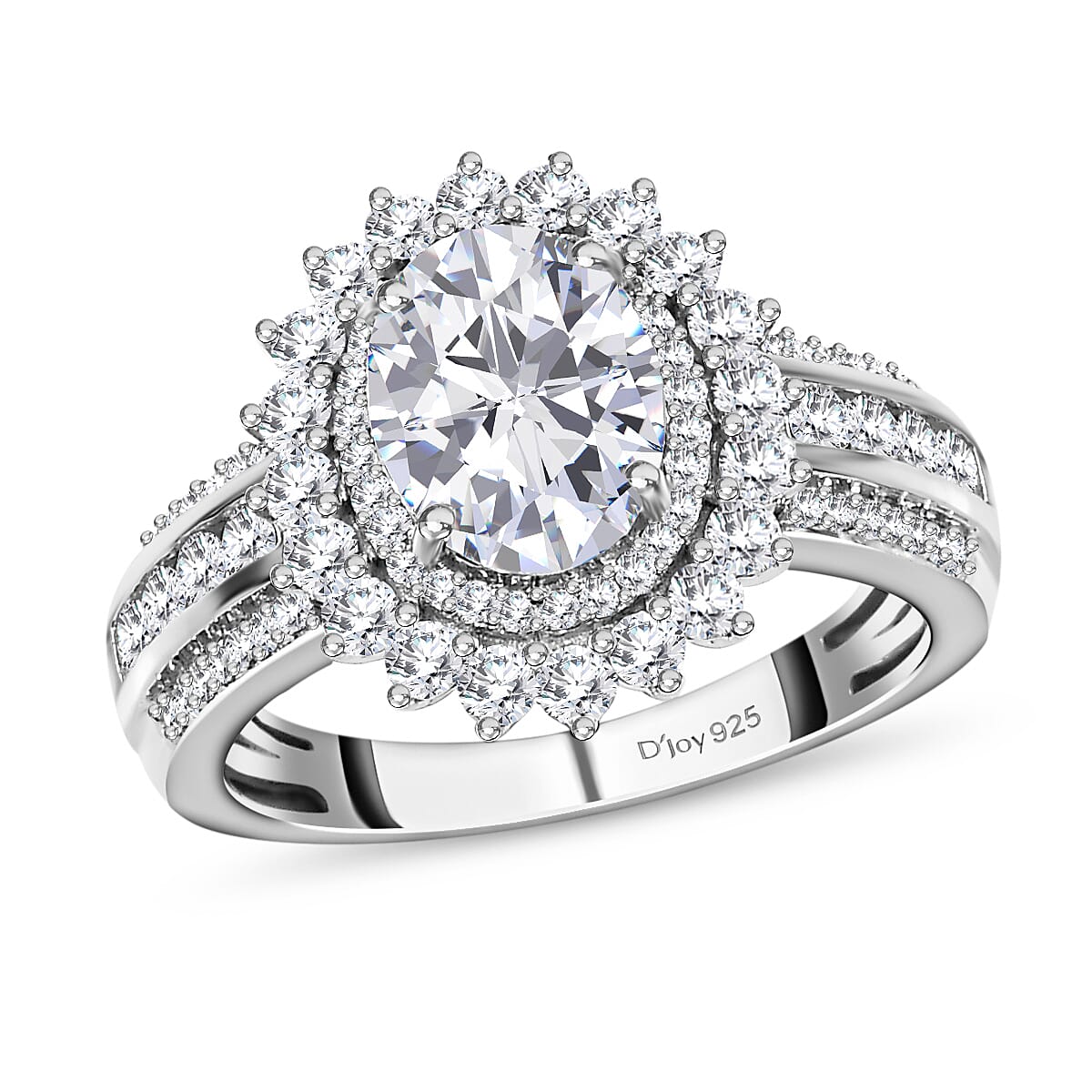 Moissanite Double Halo Ring in Platinum Over Sterling Silver (Size 10.0) 2.60 ctw