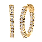 Moissanite Earrings in Vermeil YG Over Sterling Silver, Inside-Out Hoops, Silver Hoops, Anniversary Gifts For Her (7.25 g) 1.50 ctw