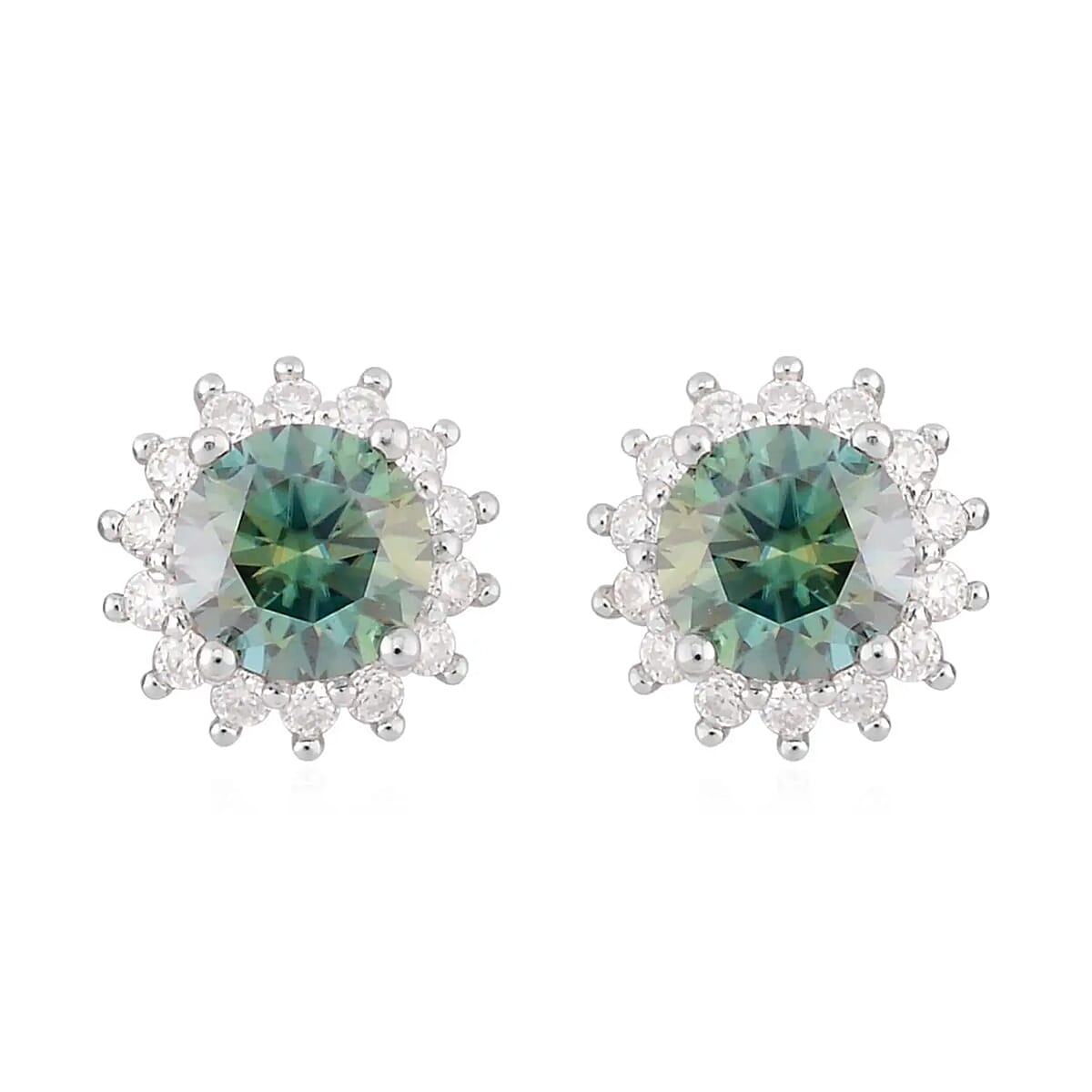 Elevate your style with our captivating moissanite earrings in sterling silver. These sunburst stud earrings feature beautiful round-shaped colored moissanite at the center, surrounded by a radiant halo of white moissanite rounds. The sunburst design heightens the earrings' allure, catching and reflecting light in an eye-catching display of sparkle.
