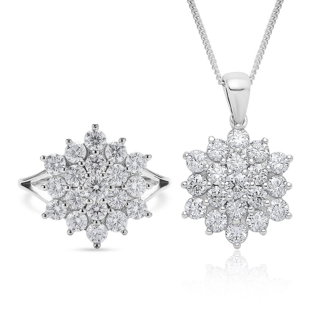 Moissanite Floral Ring and Pendant Necklace 18 Inches in Rhodium Over Sterling Silver 3.90 ctw