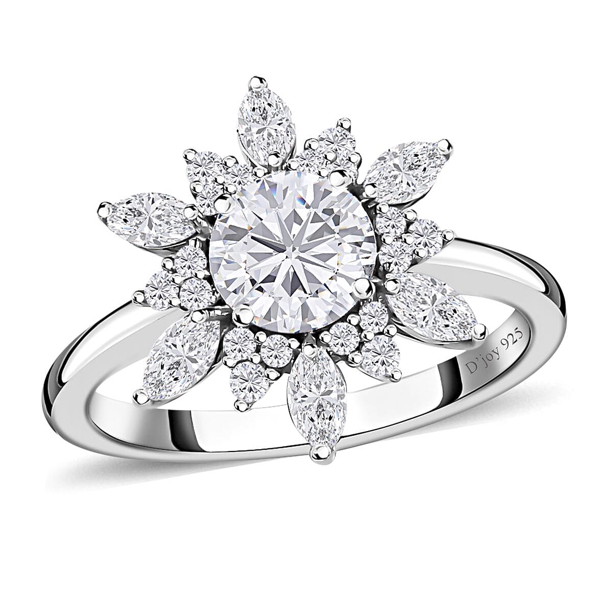 Moissanite Floral Ring in Platinum Over Sterling Silver (Size 6.0) 1.50 ctw