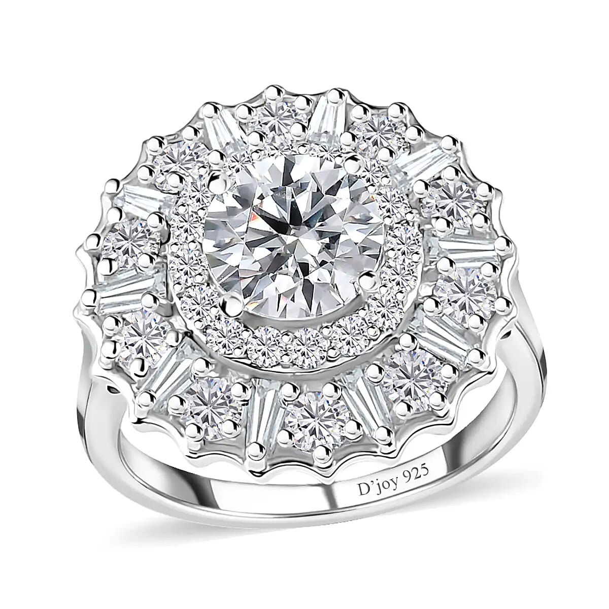 Moissanite Floral Ring in Platinum Over Sterling Silver (Size 6.0) 2.50 ctw