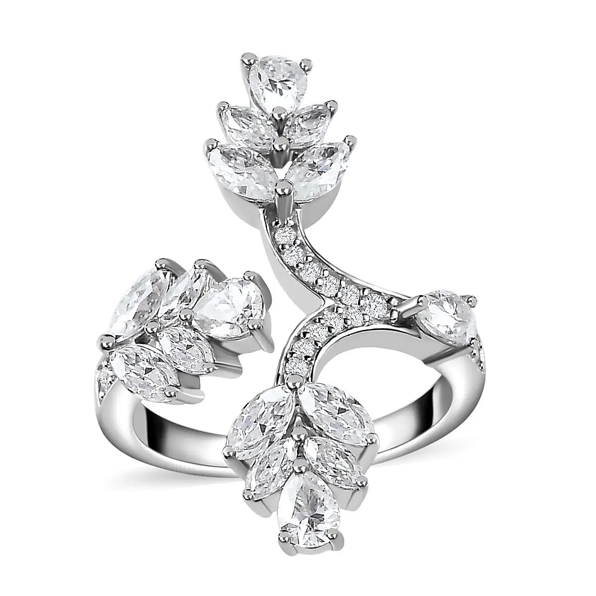 Moissanite Floral Trilogy Open Statement Band Ring in Platinum Over Sterling Silver (Size 6.0) 1.90 ctw