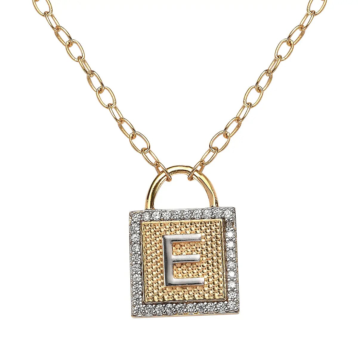 Moissanite Forever Love Lock Initial E Necklace (18 Inches) in Vermeil YG and Platinum Over Sterling Silver 0.25 ctw