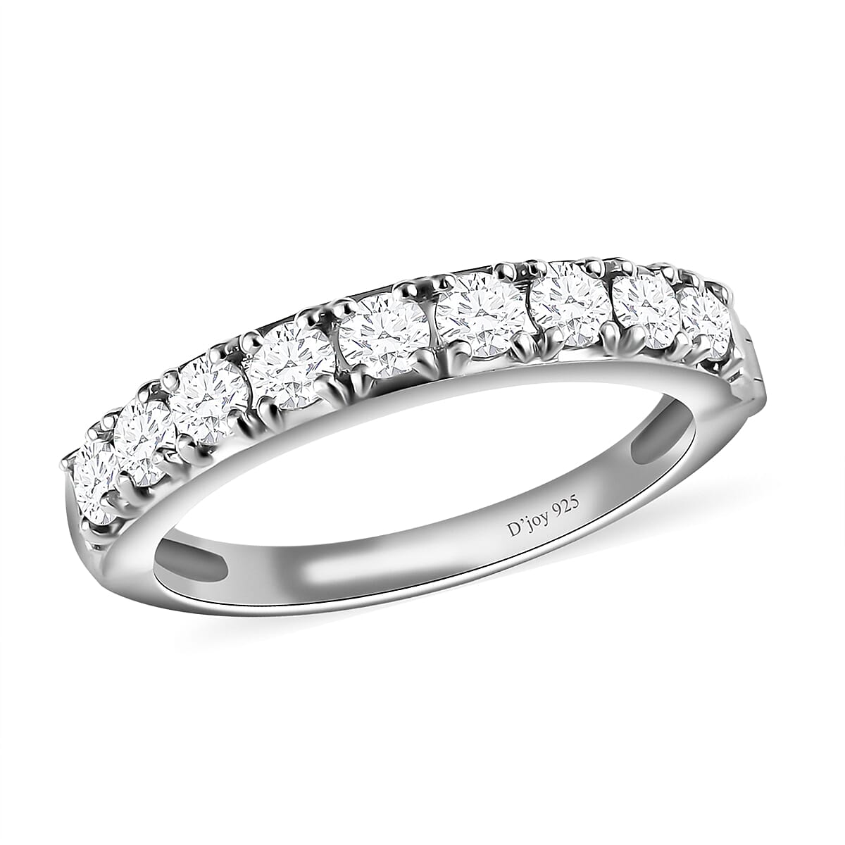 Moissanite Half Eternity Band Ring in Platinum Over Sterling Silver (Size 10.0) 0.90 ctw
