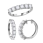 Moissanite Half Eternity Band Ring (Size 7.00) and Hoop Earrings in Platinum Over Sterling Silver 2.85 ctw