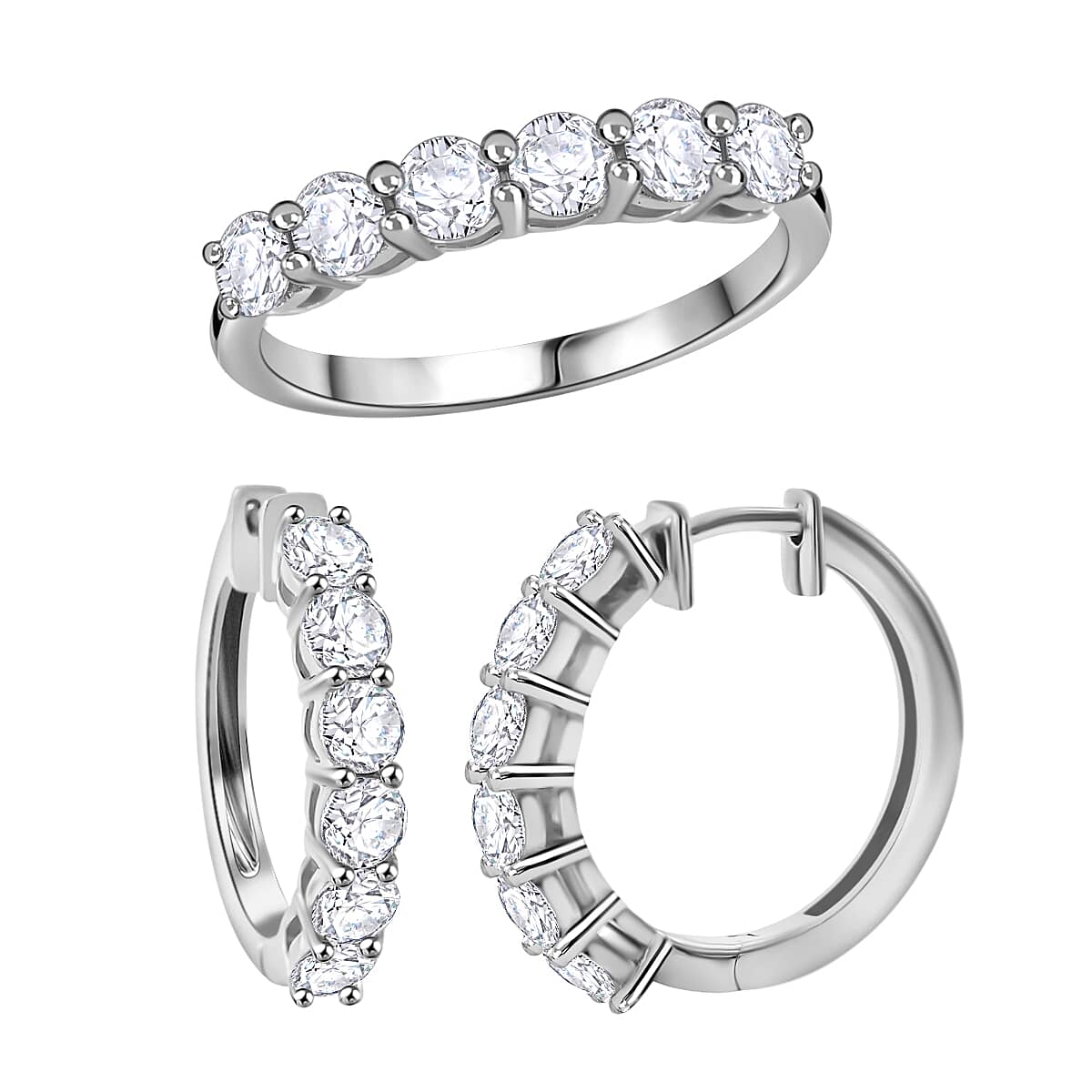Moissanite Half Eternity Band Ring and Hoop Earrings in Sterling Silver BannerMoissanite Half Eternity Band Ring and Hoop Earrings in Sterling SilverBanner