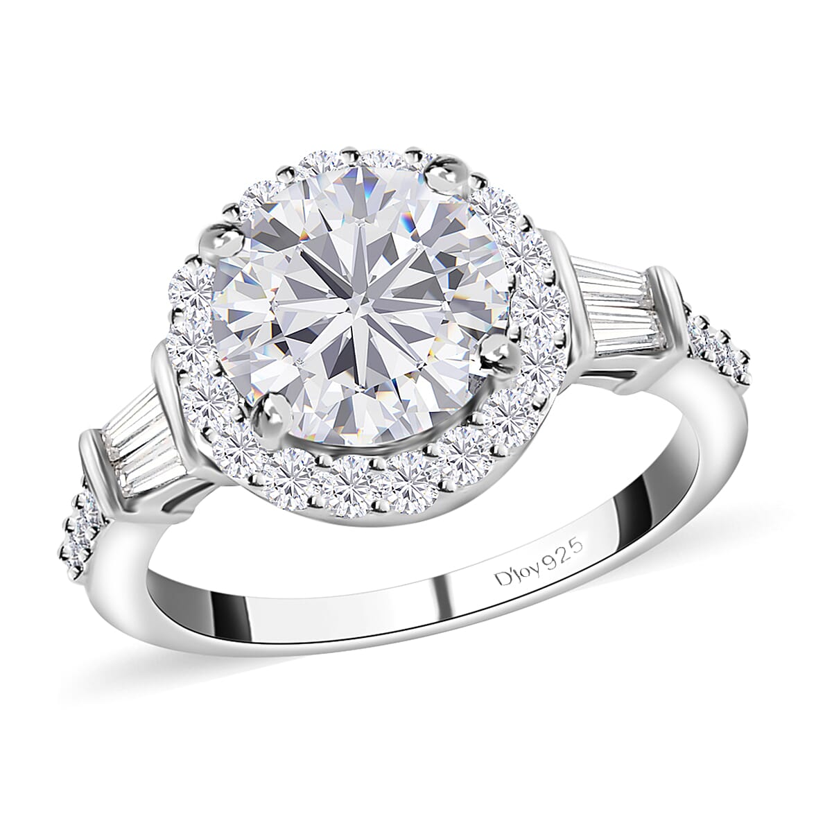 Moissanite Halo Ring, Platinum Over Sterling Silver Ring, Moissanite Ring, Gifts For Her 2.10 ctw
