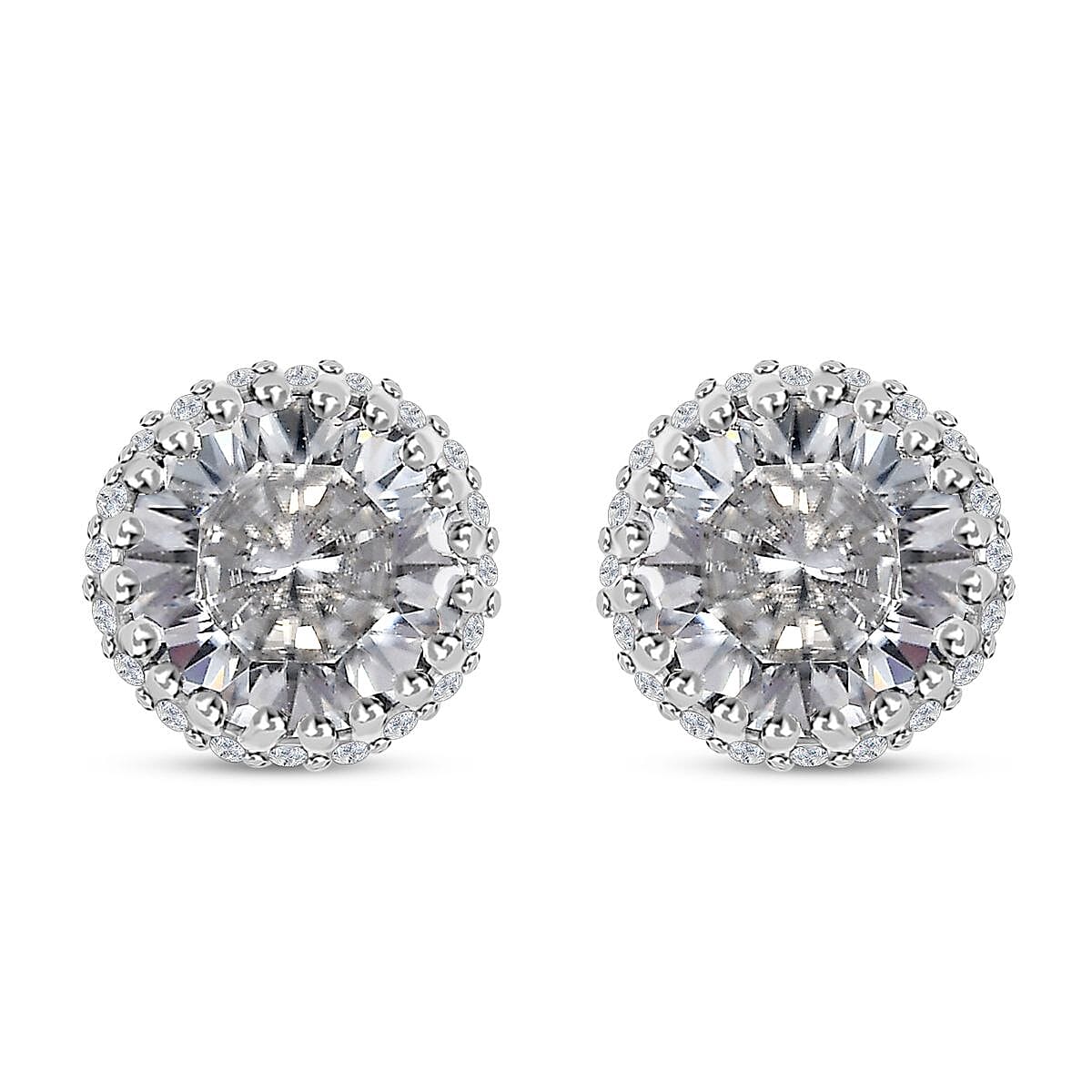 Moissanite Halo Stud Earrings in Platinum Over Sterling Silver 2.25 ctw