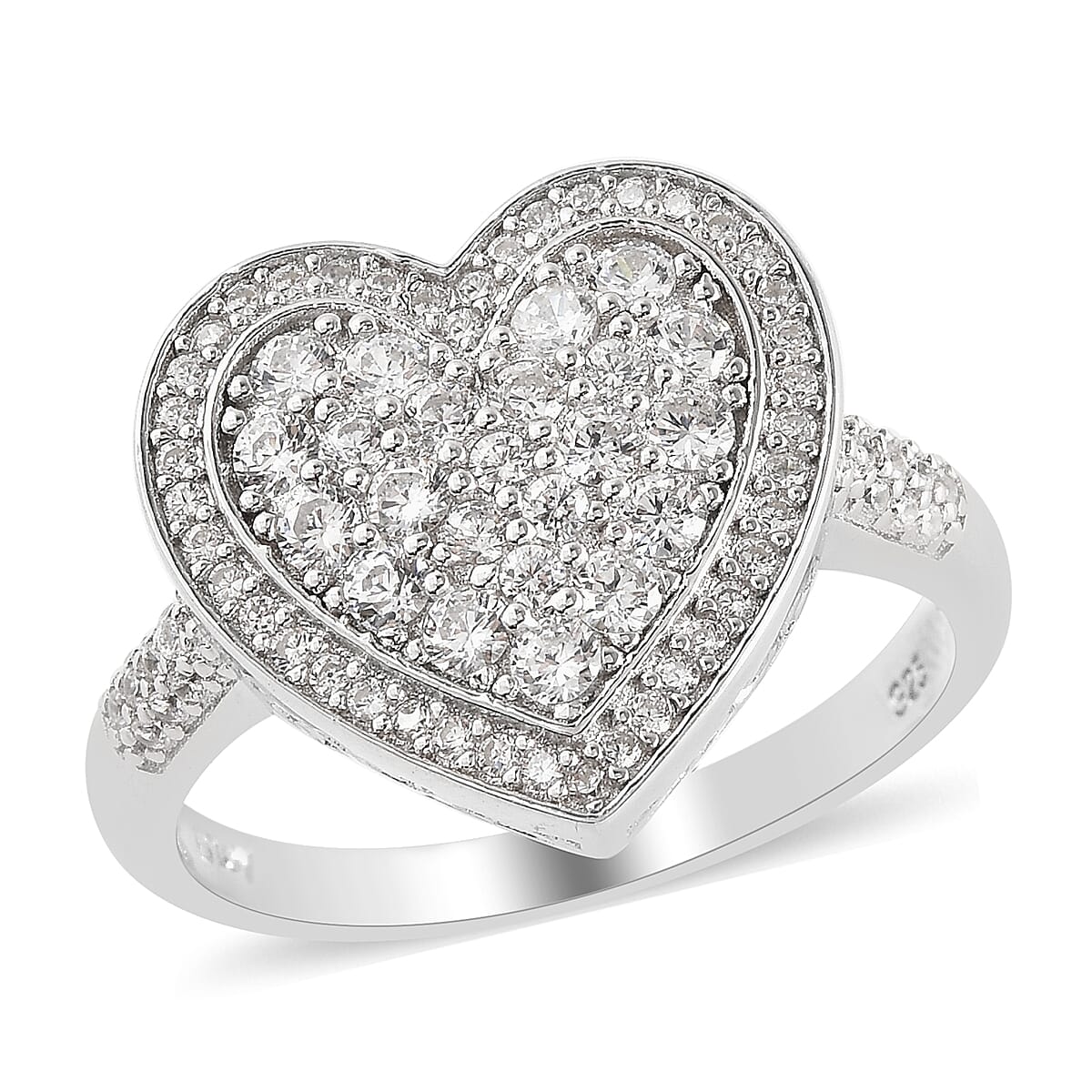 Moissanite Heart Shape Cocktail Ring in Rhodium Over Sterling Silver (Size 5.0) 0.85 ctw