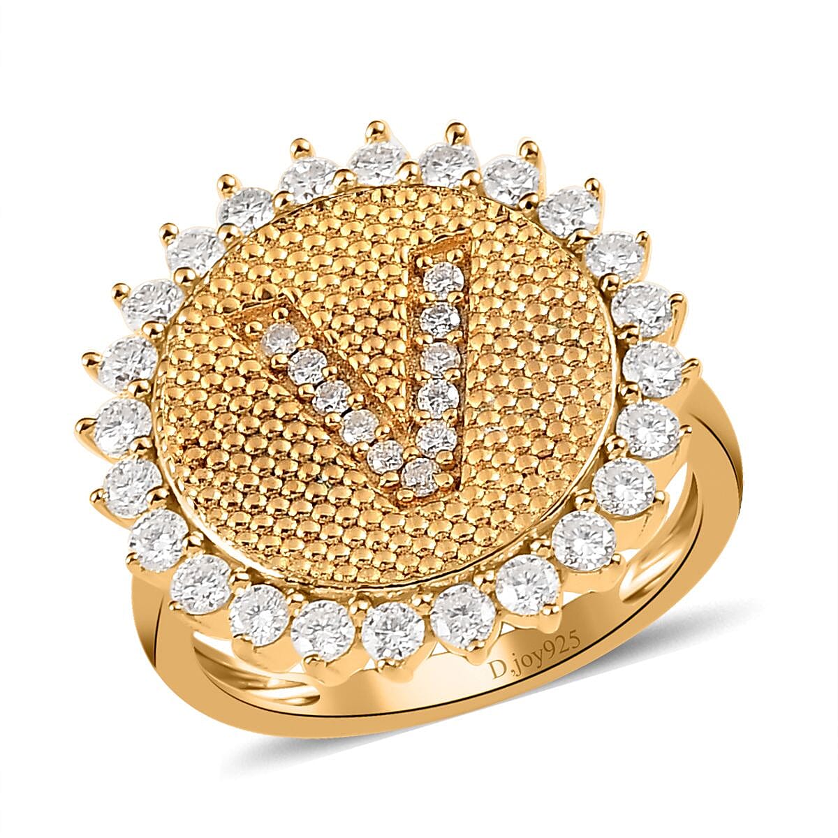 Moissanite Initial V Sun Medallion Ring in Vermeil Yellow Gold Over Sterling Silver (Size 7.0) 0.65 ctw
