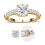 Moissanite Jewelry Set of Stud Earrings and Ring, Vermeil Yellow Gold Over Sterling Silver Jewelry Set, Moissanite Ring, Moissanite Stud Earrings 2.00 ctw