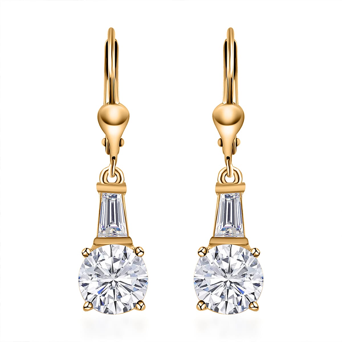 Moissanite Lever Back Earrings in Vermeil Yellow Gold Over Sterling Silver 2.65 ctw