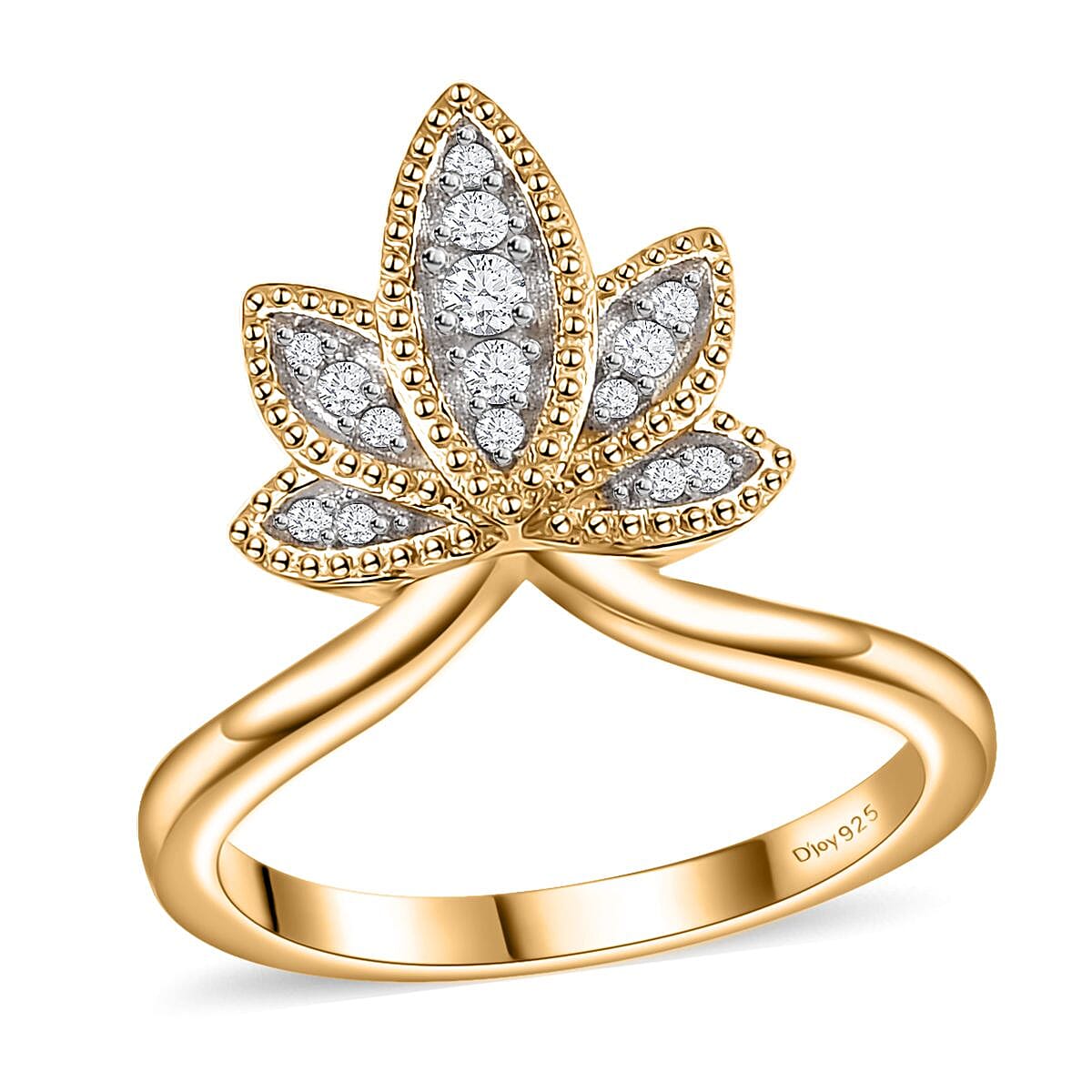 Moissanite Lotus Chevron Band Ring in Vermeil Yellow Gold Over Sterling Silver (Size 6.0) 0.20 ctw
