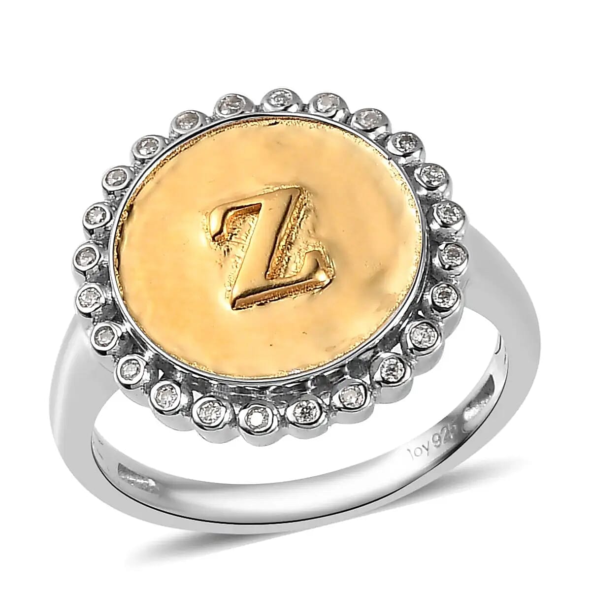 Moissanite Medallion Coin Initial Z Ring in Vermeil YG and Platinum Over Sterling Silver (Size 7.0) 0.10 ctw
