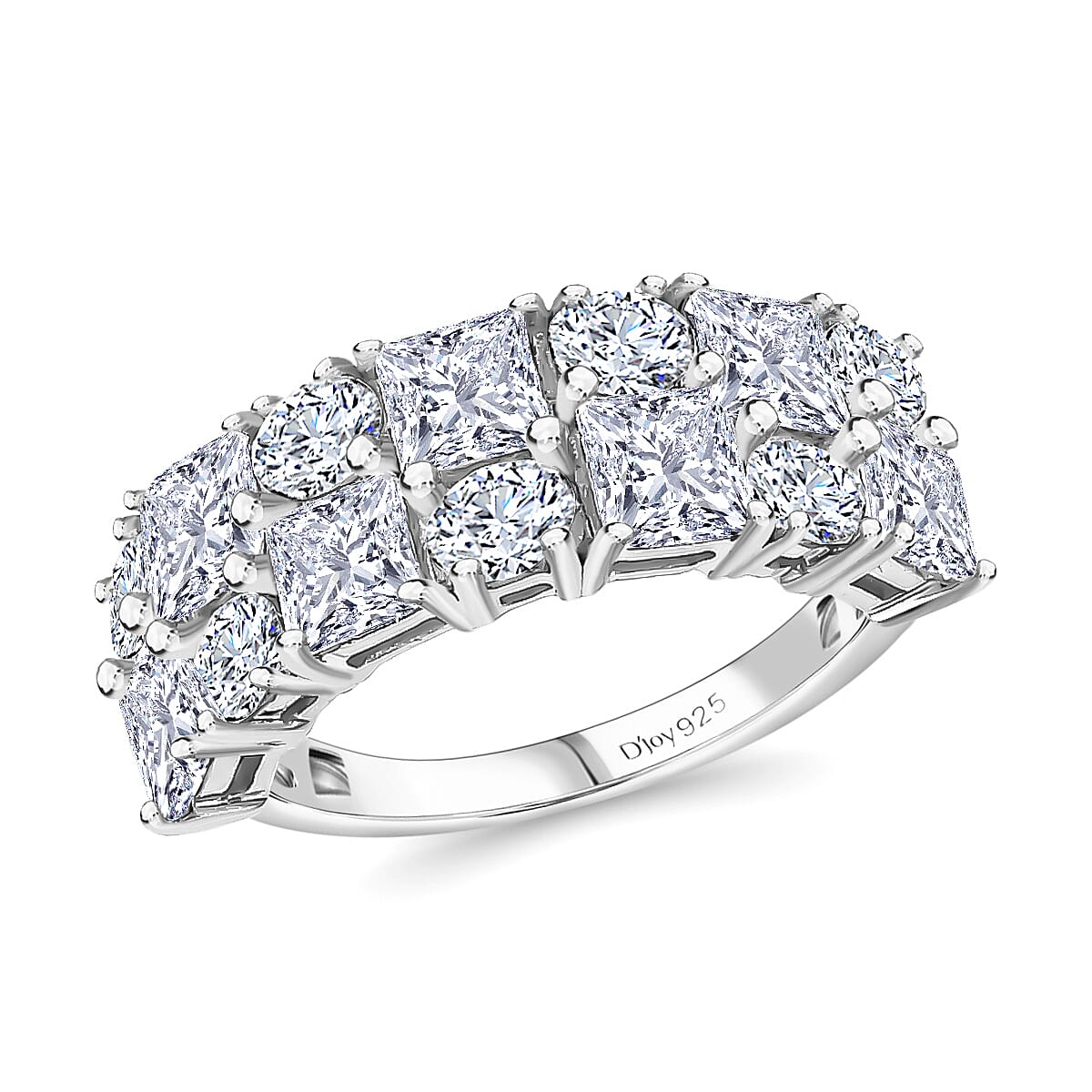 Moissanite Mixed Shapes 2 Row Band Ring in Platinum Over Sterling Silver (Size 7.0) 3.65 ctw