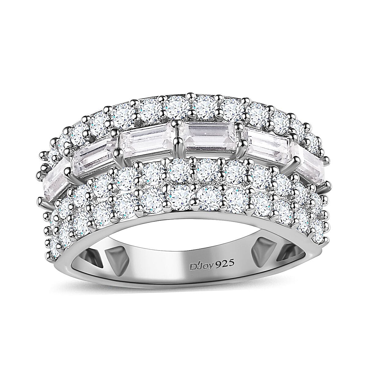 Moissanite Multi Row Layered Band Ring in Platinum Over Sterling Silver (Size 7.0) 1.50 ctw