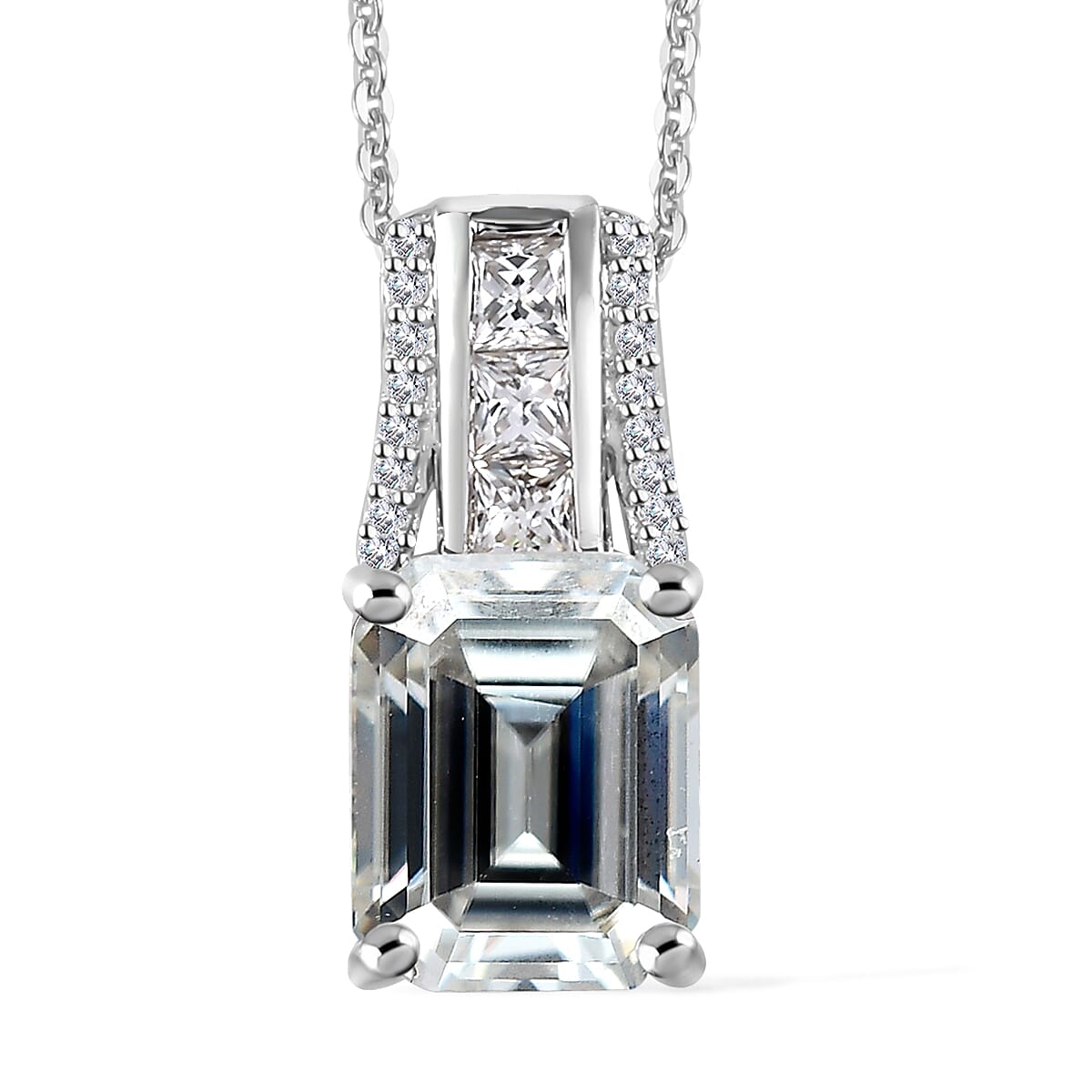 Moissanite (Oct 10x8mm) Pendant Necklace (20 Inches) in Platinum Over Sterling Silver 4.10 ctw