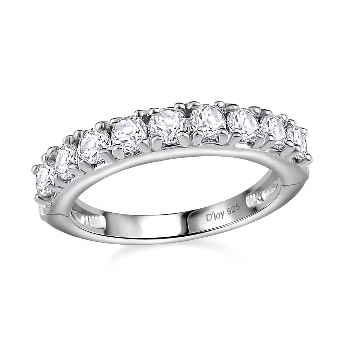 Designed to capture enduring elegance, this moissanite ring draws inspiration from the classic eternity band. Crafted in sterling silver with a premium finish, the band ring features prong-set moissanite gemstones encircling the band, with an openable feature ideal for those with arthritis.