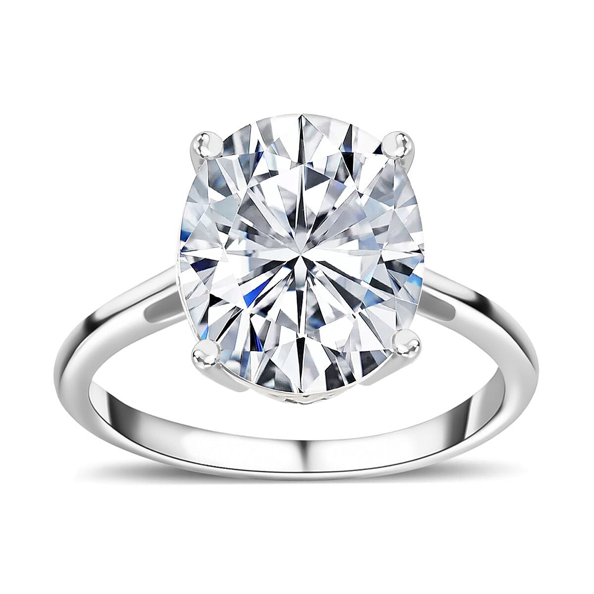 Moissanite (Oval 12x10mm) Solitaire Ring in Platinum Over Sterling Silver (Size 10.0) 5.00 ctw