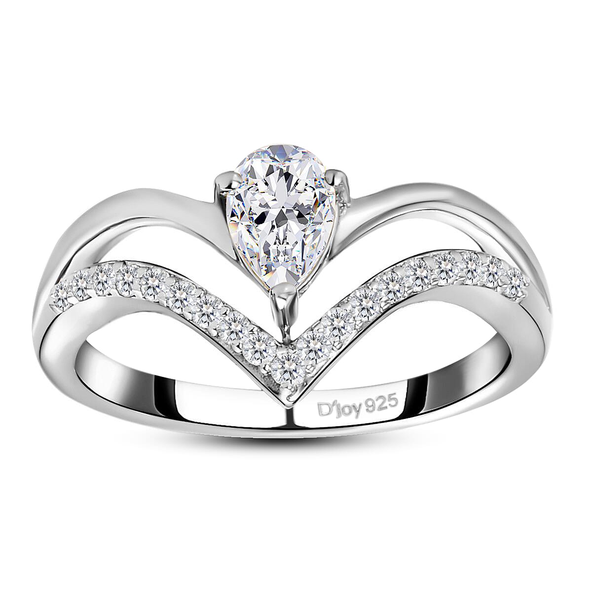 The moissanite wishbone ring showcases a center pear-cut moissanite set on prongs. Tiny round cut accents complement this striking centerpiece, all set in a sleek split shank design crafted in silver. The elegant design is comfortable to wear every day.