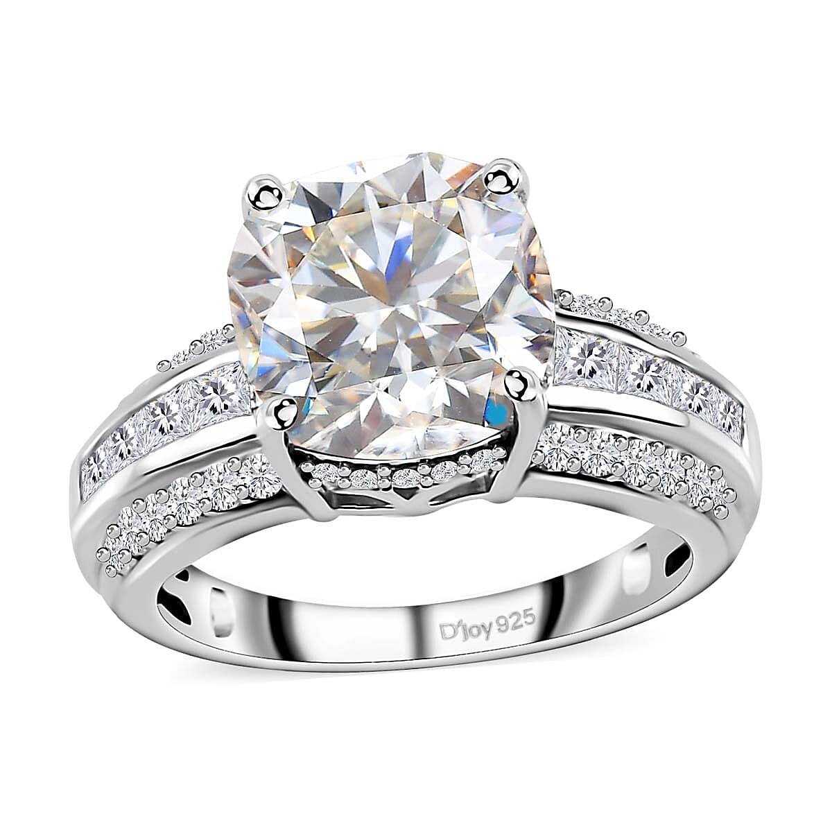 Elevate your style with our exquisite moissanite ring in platinum over sterling silver. Crafted with precision and passion, this dazzling piece is not just a ring—it's an expression of enduring beauty and refined taste. As you slip it onto your finger, feel the allure of a timeless accessory that seamlessly blends sophistication with a touch of contemporary flair.
