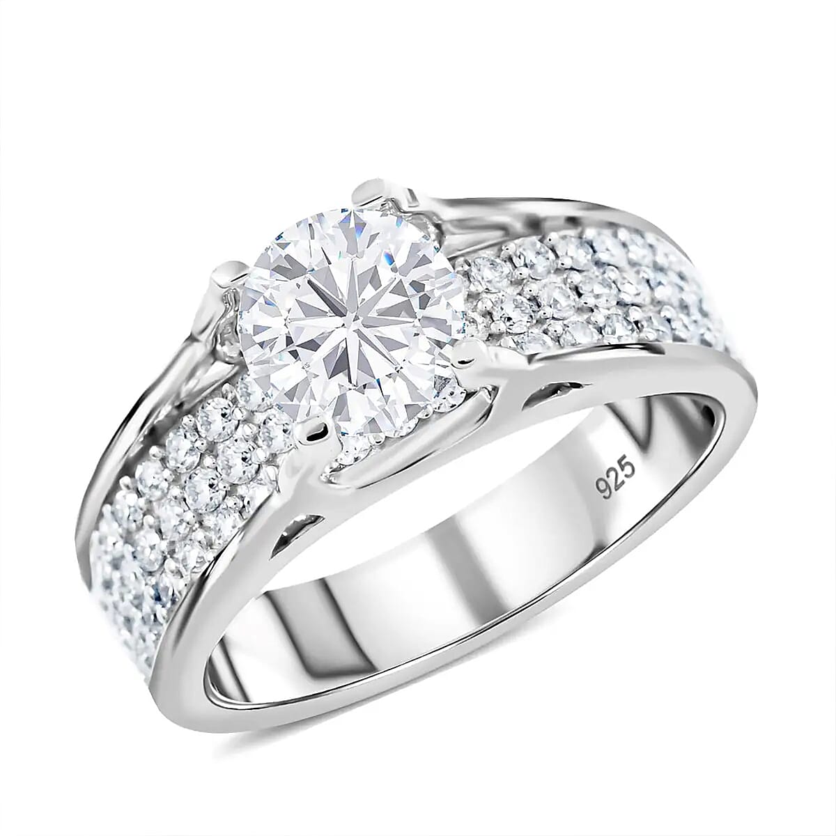 Moissanite Ring in Rhodium Over Sterling Silver (Size 8.0) 1.90 ctw