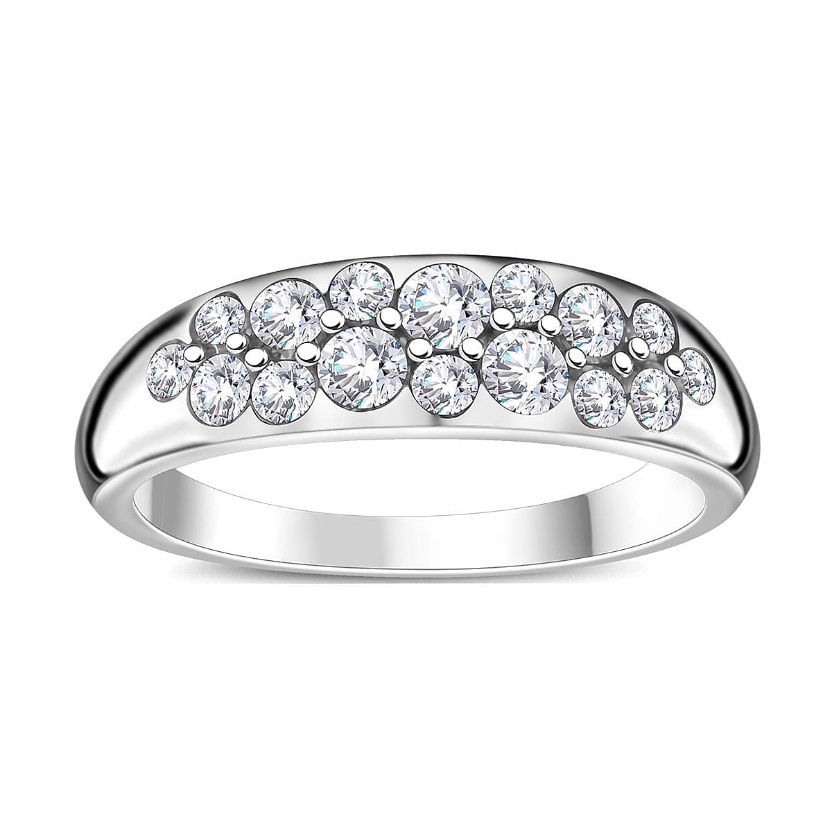 The bubble inspires the Moissanite Ring in Sterling Silver, symbolizing infinite and eternal oneness. Featuring lab-created moissanite, this ring is known for its brilliance, durability, and affordability, with gems set on flush and prongs for maximum visibility.