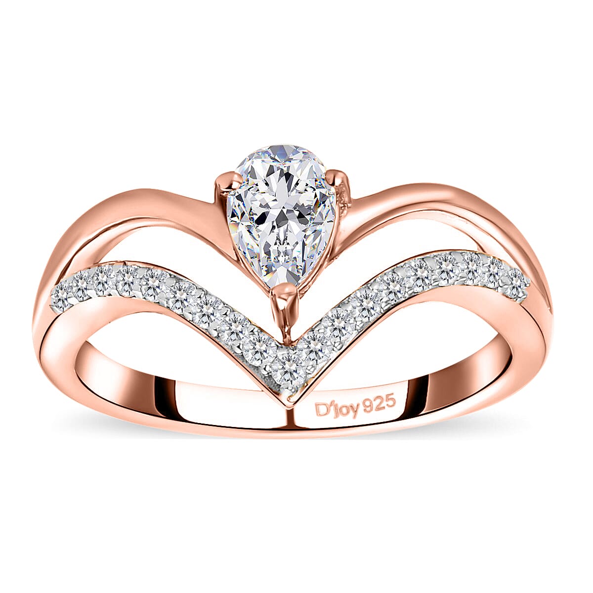 The moissanite wishbone ring showcases a center pear-cut moissanite set on prongs. Tiny round cut accents complement this striking centerpiece, all set in a sleek split shank design crafted in silver. The elegant design is comfortable to wear every day.