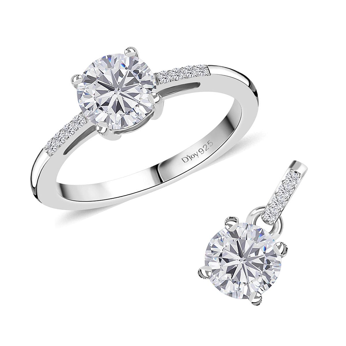 Moissanite Ring (Size 5.0) and Pendant in Platinum Over Sterling Silver 1.60 ctw