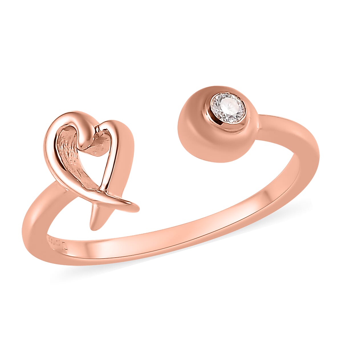 Moissanite Ring , XO Ring , Open Band Ring , Vermeil Rose Gold Over Sterling Silver Ring , Moissanite Heart Ring