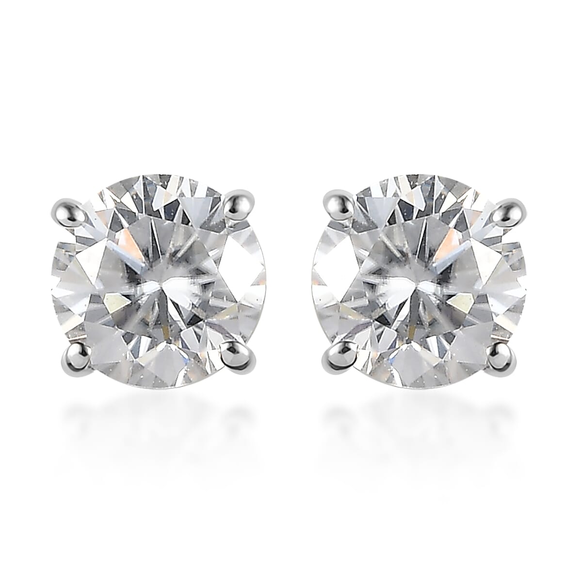 Moissanite (Rnd 6mm) Stud Earrings in Platinum Over Sterling Silver 1.65 ctw